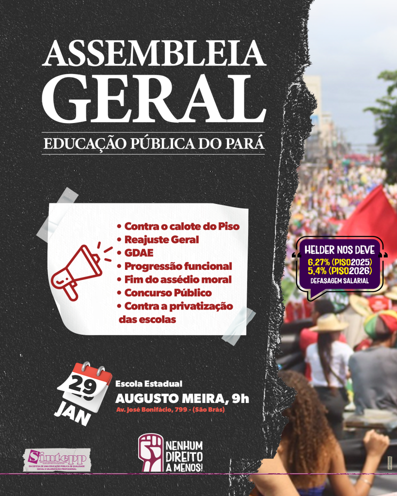 - Contra o calote de Helder no piso do magistério (defasagem 2025: 6,27% / percentual 2026: 5,4% )