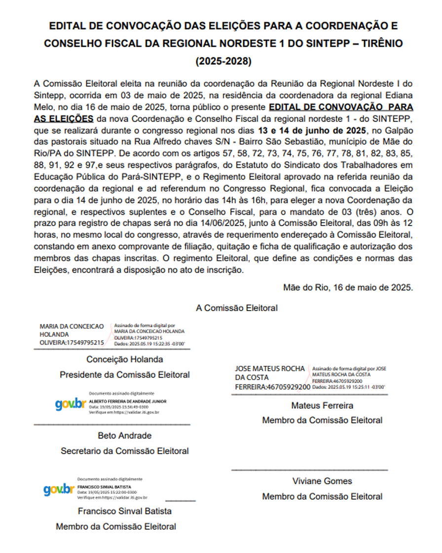 Edital de Eleição para Coordenação, Conselho Fiscal e de Ética da Regional Tocantina 1 de setembro de 2025 Leia mais »