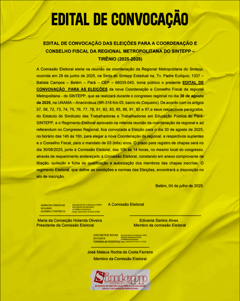 Edital de Eleição para a Coordenação da Regional Metropolitana