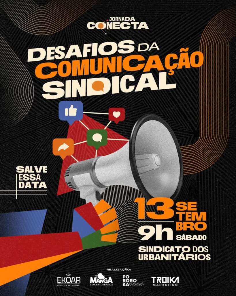 Esse é nosso convite a você e seu sindicato. O evento vai abordar estratégia de marketing, produção de conteúdo, inteligência artificial, conteúdo mobile e WhatsApp, mostrando como usar essas ferramentas para ampliar o alcance e o impacto das vozes que defendem nossos direitos.